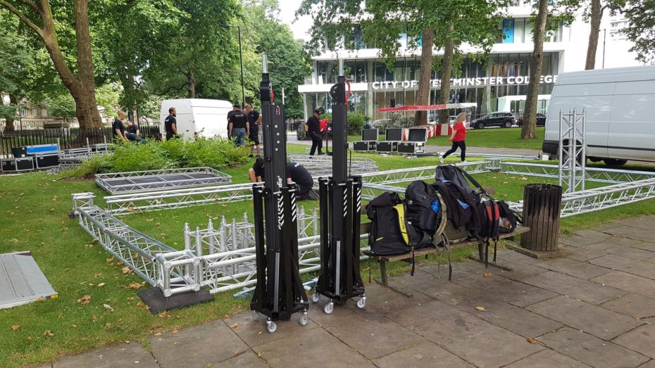 Levelling a stage on an uneven surface is a challenge and we have a variety of screw jacks / adjustable legs. We also have hydraulic platforms and are confident we can overcome any location issues and concerns that clients may have. If outdoor stages are required we have a selection of Truss structures with covers to protect our clients from the elements.