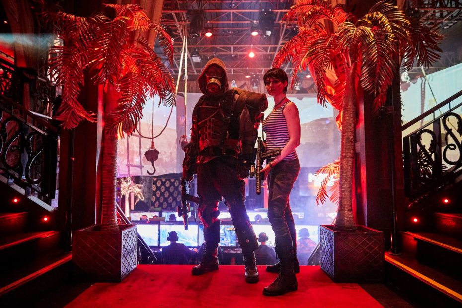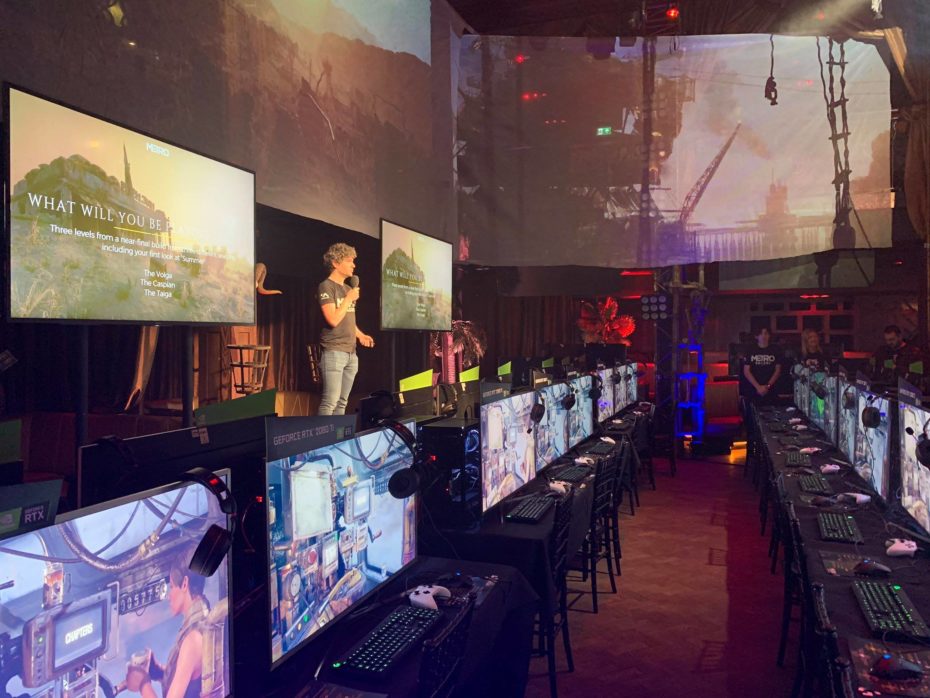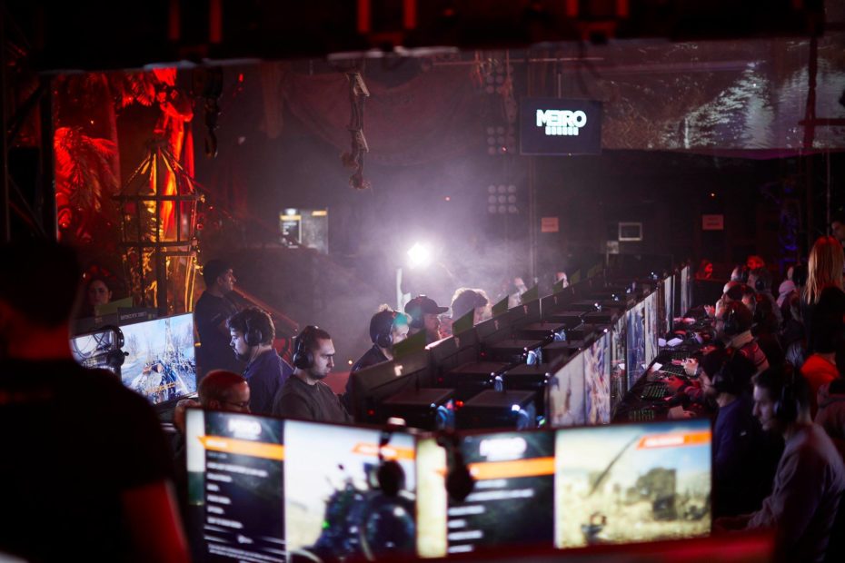 With more than 100 x 40” 4K HDR screens and a split of 50 x XBOX ONE X consoles and 50 x i9 2080 Ti Gaming PC’s and with some 85” 4K screens to aid the presentation and 3 x HD projectors to help with the panoramic imagery above the play space and lots of wireless battery powered LED lighting, we set off to London at 5am in the morning ready for a very full days build.