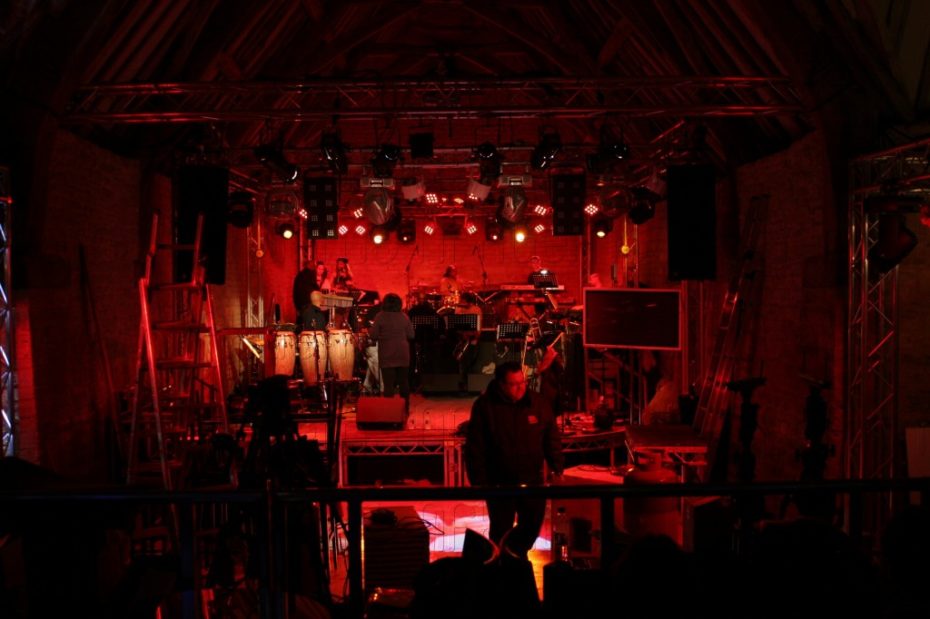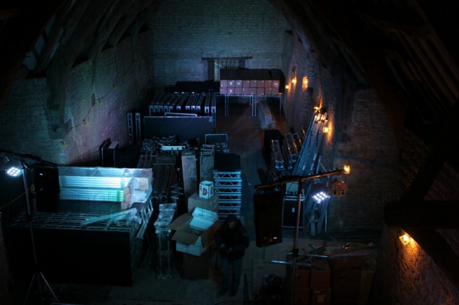 Having completed a successful sound check/rehearsal in April 2010 on location it was then time to start planning for the full live party later in the year. The challenge to put so much bespoke equipment in one of the UK’s largest vaulted barns in the south of England at the famous St Catherines Court, formerly owned by Jane Seymour, was not lost on us and we knew some major planning would be required along with spending several weeks on site during the build and actual live event.