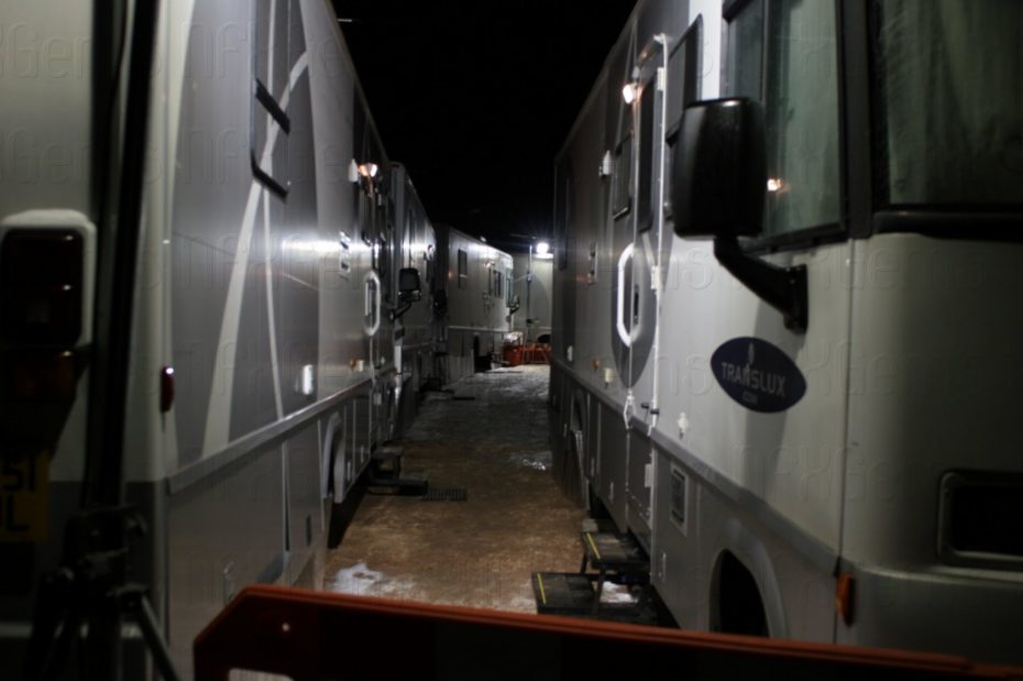 A whole fleet of huge touring Winnebago’s was brought in to accommodate not just the bands but all our staff and security for the days onsite as the weather was quite testing in November and a heavy snowfall made it very interesting especially for the equipment outside.